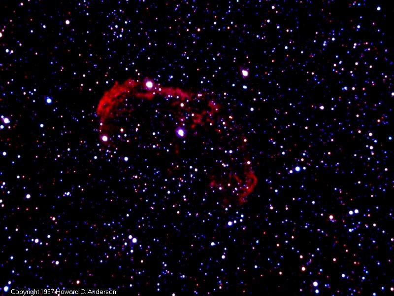 | Additional image processing | This represents my fourth or fifth attempt on this object. I consider this object to be rather difficult and was very pleased this time with the results. There was absolutely no light pollution at the chosen site. It should be noted that the scanning process seemed to bring out more blue in the background stars than is evident when viewing the slide. The slide shows excellent contrast between the dark sky and the Crescent Nebula. The digitized version approaches the contrast level of the slide although it is hard to beat a slide. |
