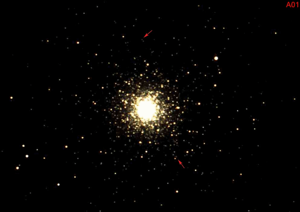 Click on the image to see a GIF video of pulsating RR Lyrae stars (there are MANY in the video - I have arrows to show some of them so you know what to look for in the video...)