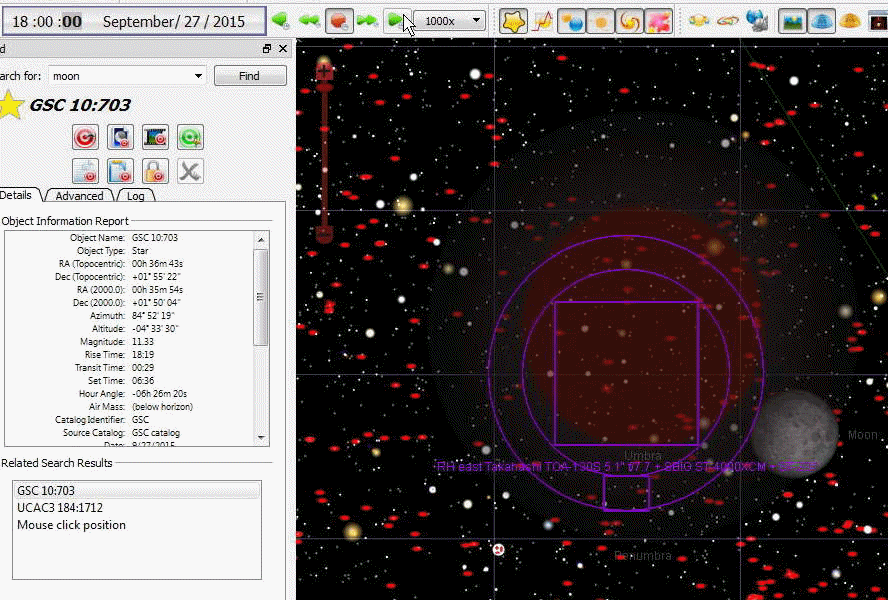 I used TheSkyX Pro to generate the images and used HandyAvi and UScreenCapture to capture the video. Then converted to a GIF file using JASC Animation Shop
