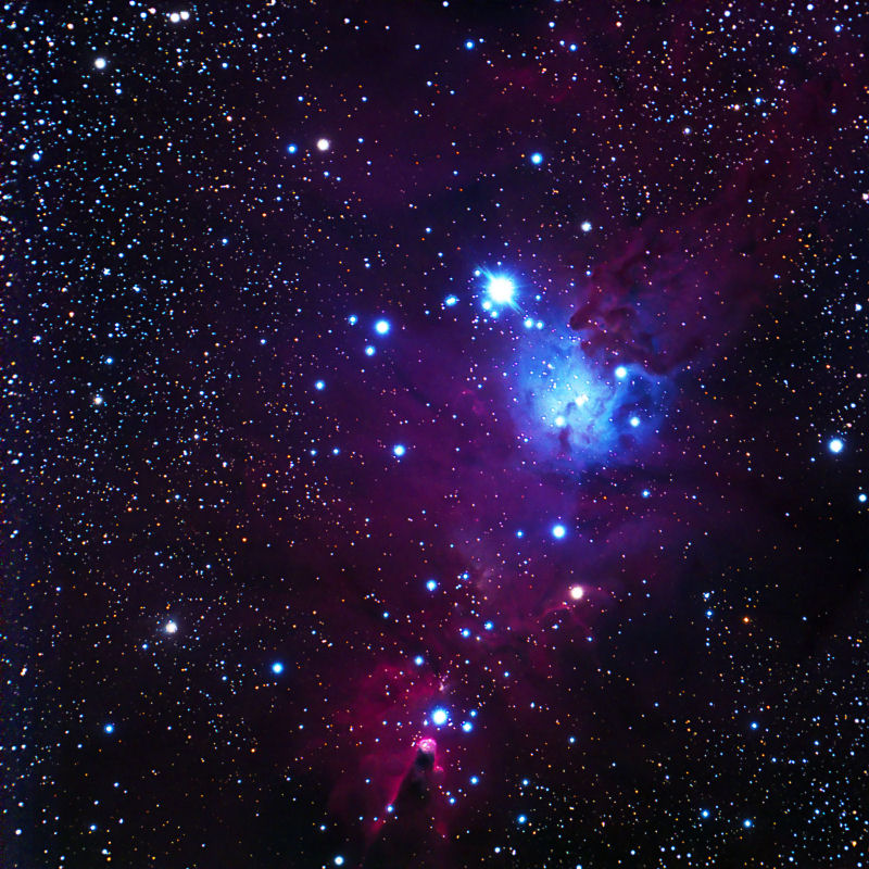 The cone is one of my favorite objects. First saw it in an astronomy book when I was 8 years old. At that time, all deep space astrophotos were black and white... Color corrected using eXcalibrator system. So the colors are as accurate as I know how to make them... Additional processing in PhotoShop... |