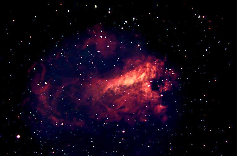 Additional image processing Used CCDSoft "Align Folder of Images" to align all of the images and store the aligned images in a new "aligned" directory.  Then created one directory each for aligned red images, blue images, green images and luminance images and transferred red images to red directory, green images to green directory, etc.  In CCDSoft, did a "Combine folder of images" addition operation on each of the four directories.  This resulted in one red stacked frame, one green stacked frame, one blue stacked frame and one luminance stacked frame.  Read the four images into AIP4WIN and, on the luminance image, did a Van Cittert deconvolution with Gaussian blur of 1.2, Noise Reduction .5, 20 iterations, high-frequency only processing to produce a sharper luminance image.  Then did a Join Colors operation to create a color image.  Used "Manual Settings" and reduced Gamma to .5, increased Color Saturation to 2, and reduced luminance fraction to .5.  Saved image as a JPEG file.  Read file into Paint Shop Pro to run edge-preserving-smooth noise filter (value 2) followed by an unsharp-mask operation of  radius 3, Strength 50, Clipping 5 and saved the result.  Read result image into AstroPic, an image processing program I wrote, and ran two iterations of my color brightening algorithm (it brightens using an inverse exponential function so brighter things remain unchanged but dimmer things get brightened.)   Result image is what you see...