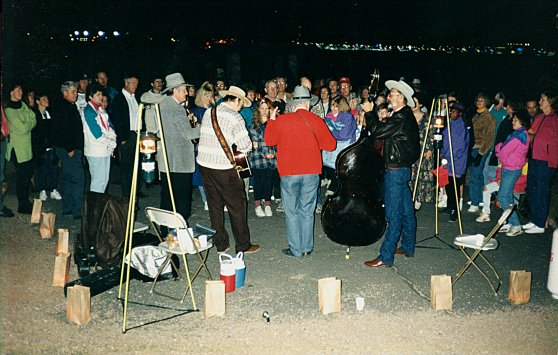 follow a trail lighted only by Luminarias (paper bags containing lit